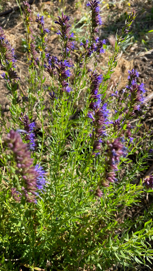 Hyssop (Hyssopus officinalis) is a low-lying shrub native to Mediterranea with a unique beauty and medicinality. The violet flowers attract bees and other flying insects. Known to attract beneficial insects, hyssop's pungent aroma make this an excellent tea for colder seasons. The foliage can withstand mild frosts.