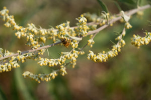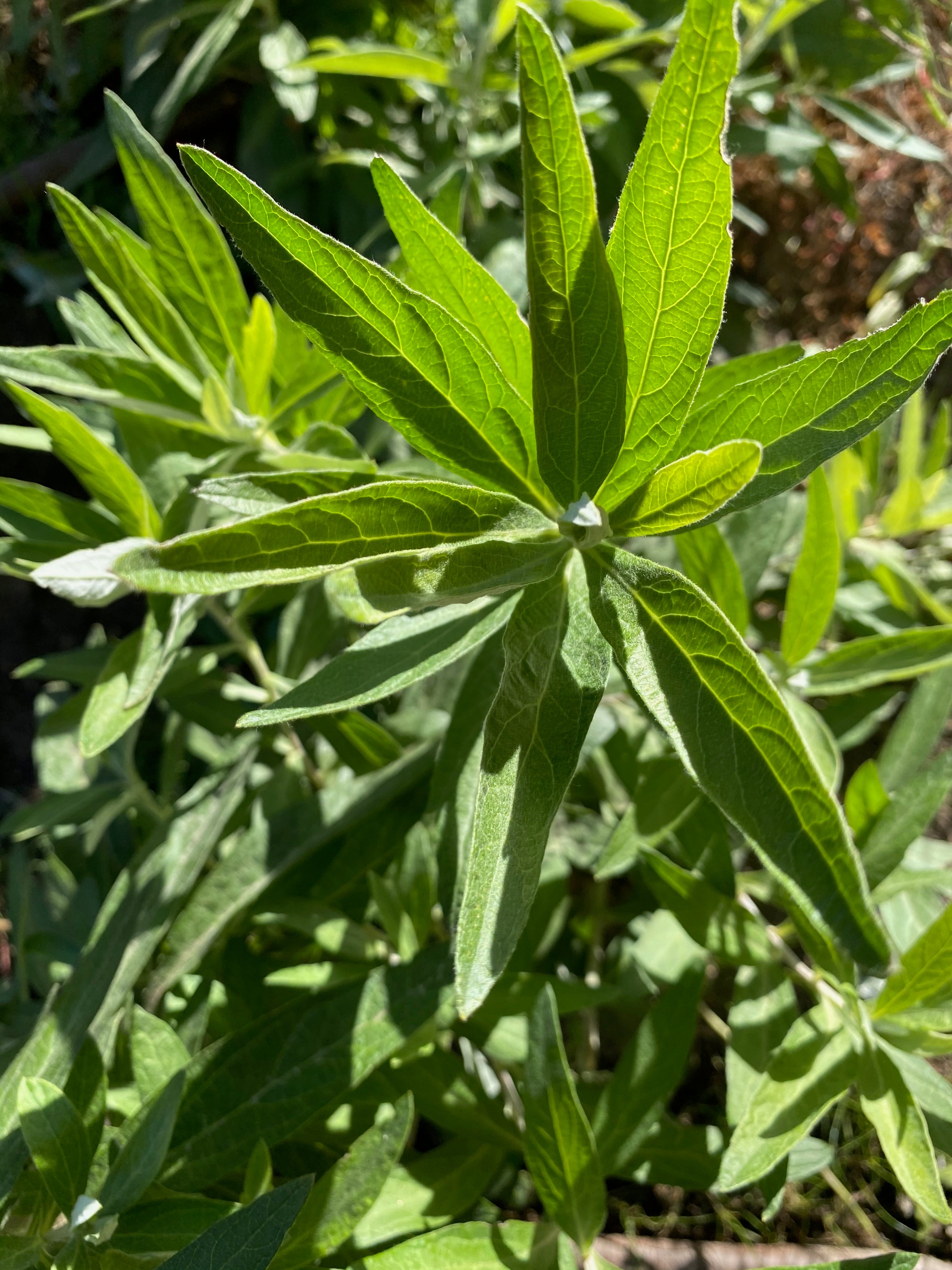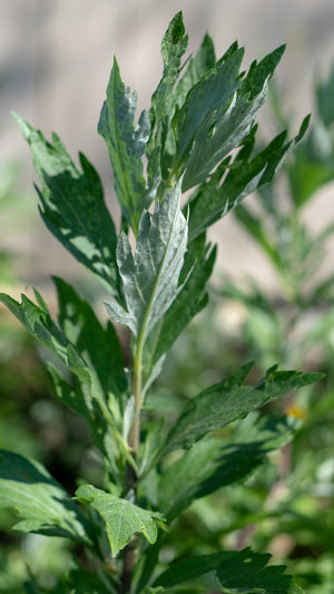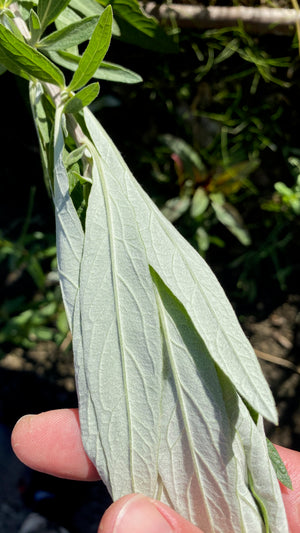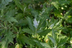 California Mugwort (Artemisia douglasiana) is a perennial shrub native to California and found throughout the West Coast of the United States. Plants have low water and fertility requirements and can be used to prevent erosion on hillsides. The bitter leaves can be used for tea, and the plant has folkloric uses to aid dreaming.