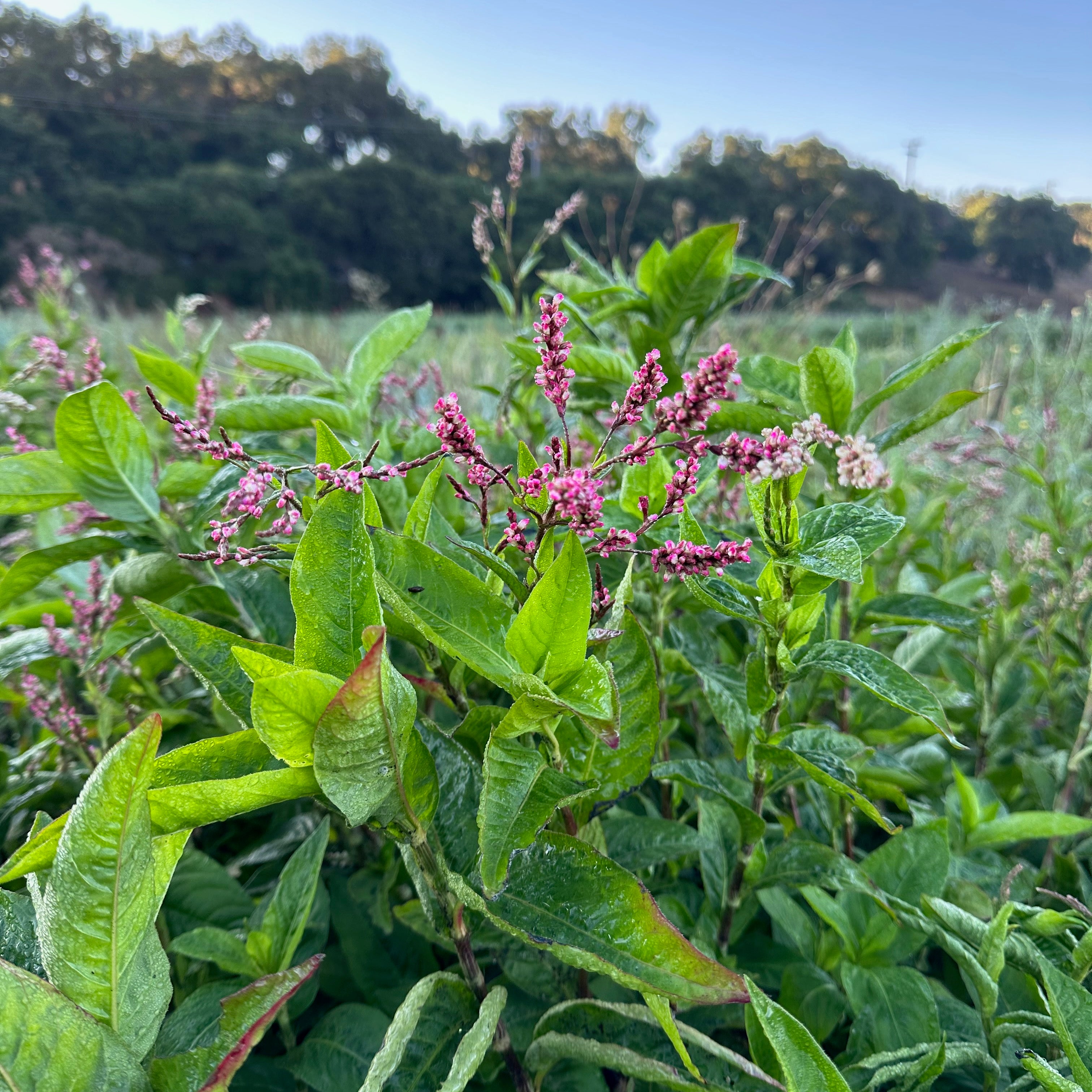 Japanese Indigo (Persicaria tinctoria) is the most common dye indigo in use, easy and fast growing. While plants are perennial and can overwinter, it is more practical to grow them as annuals in most climates. There are a number of ways the leaves can be used for dye, including simple blending for exaction or dehydrated and powdered for later use.