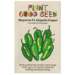 Megatron is an exhilarating jalapeño (Capsicum annuum), notable for its cylindrical to blunt-shaped, extra-large fruit that typically measures 4.5 inches on average. This robust jalapeño variant exhibits an eye-catching green exterior, which gradually transforms into a vibrant red. Its exterior is also notably smooth, enhancing its overall aesthetic appeal.