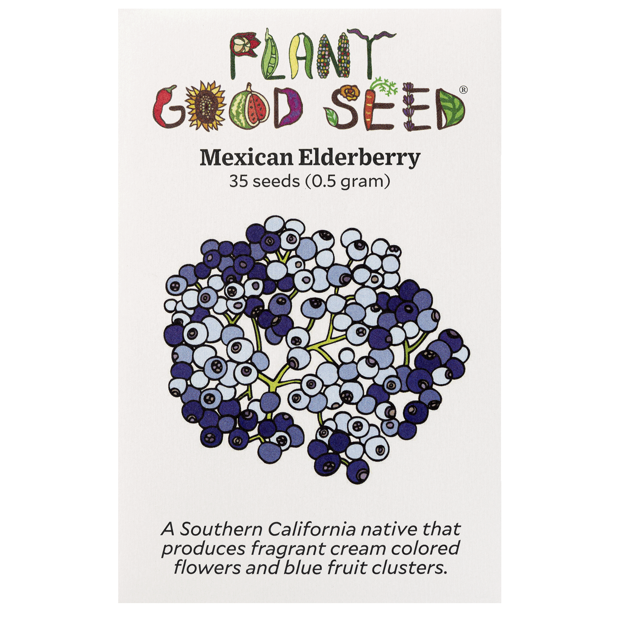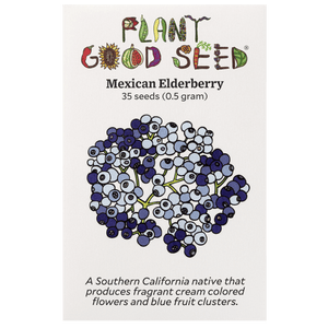 Mexican Elderberry is a Southern California native that produces fragrant cream colored flowers and blue fruit clusters. Seeds are certified organic.
